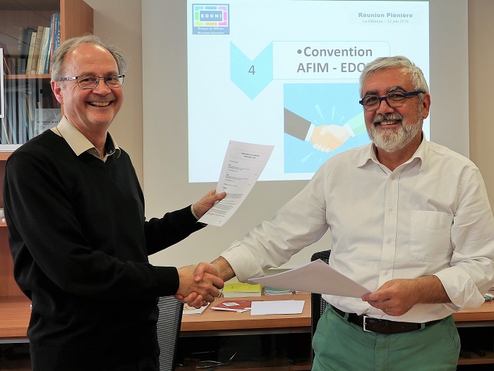Y aura-t-il bientôt des passerelles entre l’e-catalogue communautaire de l’Afim (la plateforme ec@t-npmi) et le format Édoni ? « À l’issue de notre assemblée générale, le 12 juin dernier, nous avons signé un accord de collaboration avec l’Afim en réunion plénière. Il s’agit pour l’instant d’un accord de principe et d’échanges de bonnes pratiques », explique Christian Rosescou, le président de l’association Édoni (pour : Échanges de Données Normalisées et Informatisées).