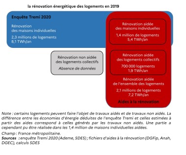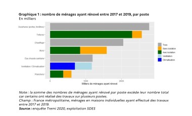 [*La synthèse de l'ONRE s'appuie sur plusieurs sources : l’enquête sur les travaux de rénovation énergétique dans les maisons individuelles (Tremi) 2020, copilotée par l’Agence de la transition écologique (Ademe) et le service des données et études statistiques (SDES), qui interroge des ménages résidant en maison individuelle sur les travaux qu’ils ont réalisés entre 2017 et 2019, ainsi que les données relatives aux principales aides à la rénovation sur la période de 2016 à 2019]