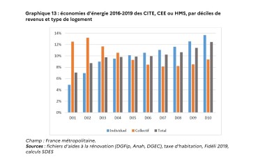 Plus précisément, concernant les aides, « si le dispositif « Habiter mieux » est, du fait de ses critères d’éligibilité, concentré sur les ménages modestes, le CITE profite davantage aux ménages aisés tandis que les CEE présentent un profil de bénéficiaires assez équilibré. », note l’Observatoire. De 2016 à 2019, les chiffres indiquent également une montée en puissance des ménages les plus modestes dans le dispositif des Certificats d’Economie d’Energie, toutefois, ces mêmes ménages engagent en proportion moins de gestes de travaux que les autres catégories de revenus.