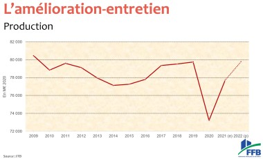 [Zepros Bâti] Avec un retour aux niveaux de 2019, la Fédération française du bâtiment entrevoit une année 2022 dans la continuité du rebond de 2021. Le marché sera porté par la maison individuelle neuve et par l’entretien-amélioration de biens anciens, notamment grâce à l’effet MaPrimeRénov. Enfin tout cela si la crise des matériaux ne se poursuit pas et si les difficultés de recrutement s’amenuisent…