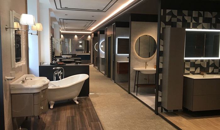 Dans un décor haussmannien reconstitué, le showroom qui a ouvert mi-octobre, dispose de deux niveaux. À l’étage inférieur, une zone spécifique est dédiée à la prescription : l’Espace Architecture. « Il s’agit d’une belle pièce avec des pierres apparentes » destinée à valoriser l’offre, précise l'enseigne.