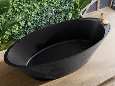 La texture Quiz est notamment mise en avant à travers la baignoire îlot Opal Quiz, la dernière innovation dévoilée par Acquabella. En Akron, matériau exclusif associant une résine polyuréthane à des charges minérales sans silice, cette baignoire se distingue par sa forme ovale sculptural. Parcourue de lignes graphiques, elle offre un relief unique, mixant les trois effets de surface du receveur Smart. « Il s’agit de la première baignoire Acquabella en Akron », souligne Pilar Gil Flores.