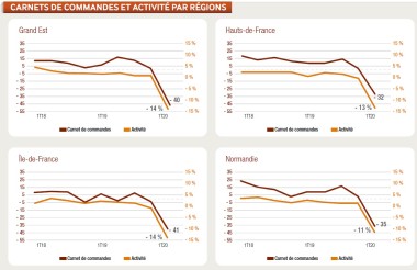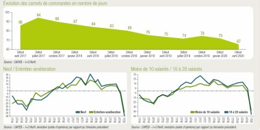 La Confédération des artisans du Bâtiment vient de rendre public les chiffres d’activité du trimestre. Cette vague de résultat arrêtés fin mars reflète le coup de frein brutal lié à l’arrêt des chantiers dès l’annonce du confinement. Il faudra attendre la prochaine série pour savoir si la reprise d’activité sans contact dans les négoces et le guide de précautions sanitaire publié par l’OPPBTP auront eu un effet notable.