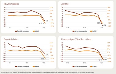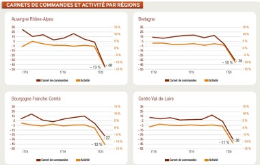 Le plus lourd tribut est logiquement payé par la construction neuve (-14%) mais les travaux d’entretien-amélioration reculent également de -10,5 %.