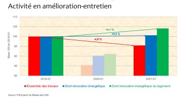 Du côté de l’entretien-amélioration, si la FFB se dit un peu déçue des résultats (-7% sur le 2e trimestre), là encore, le logement ressort gagnant, sans doute tirée par l’envolée de MaPrimeRénov’, puisque la seule rénovation énergétique affiche +2,7 %. Les perspectives sur ce marché sont très bien orientées, avec 475 000 dossiers déposés depuis le début de l’année.
