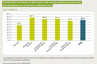76 % des artisans déclarent une hausse des prix et 57 % des ruptures d'approvisionnement