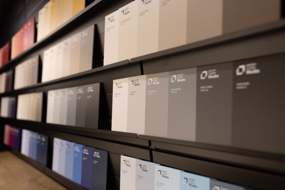 Un choix de teintes accompagné d’un véritable écosystème d’outils couleur permettant une aide au choix aussi bien en point de vente que chez le particulier : mur de couleurs, échantillons formats A5, nuanciers façade ou peintures intérieurs mais aussi carte de teintes sont disponibles pour les partenaires du groupe.