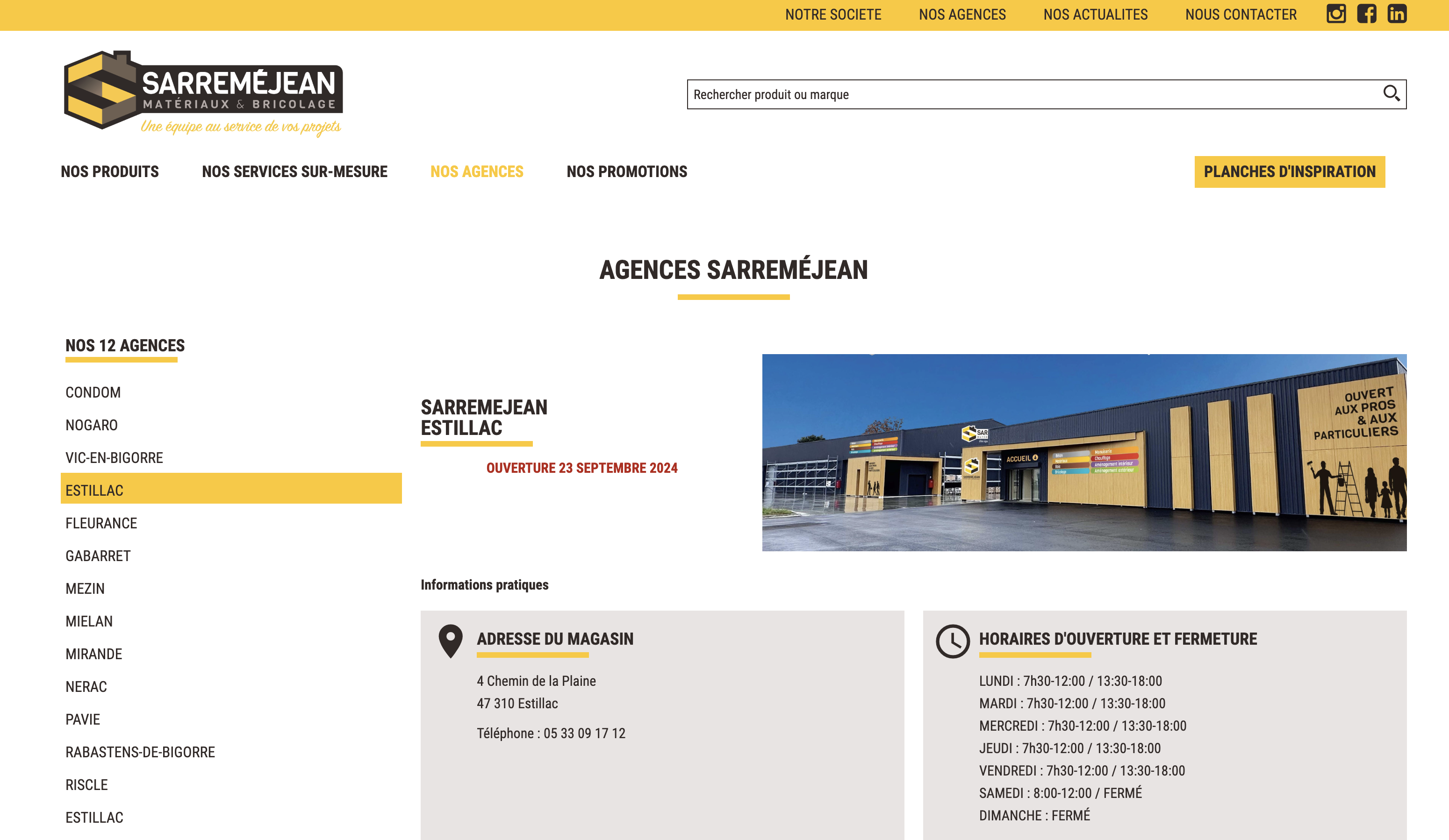 D’autre part, le groupe a été rejoint par Solumat qui, lui aussi, dispose de deux points de vente, à Saint-Sever et Castets. Son dernier d’affaires connu était de 4,7 M€ en 2016 (source : Manageo.fr). Mat Adour et Solumat appartenaient jusqu’à présent à Jean-Luc et Michel Bouydron. Leurs quatre points de vente vont basculer sou l’enseigne Sarreméjean Matériaux & Bricolage.