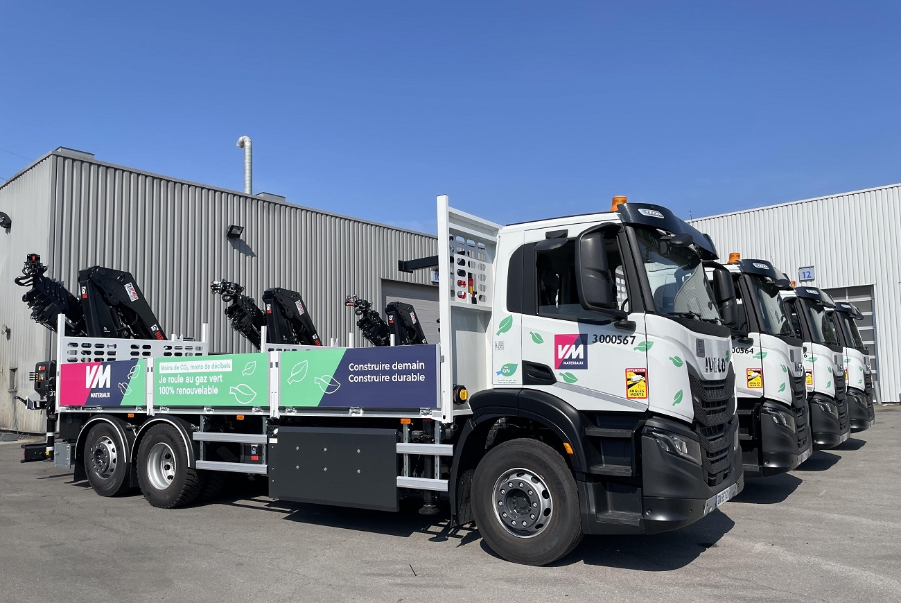 En 2023, VM Matériaux a réformé plus de 20 % de son parc de poids lourds : soit, aujourd’hui, 31 PL roulant au bio-GNC.