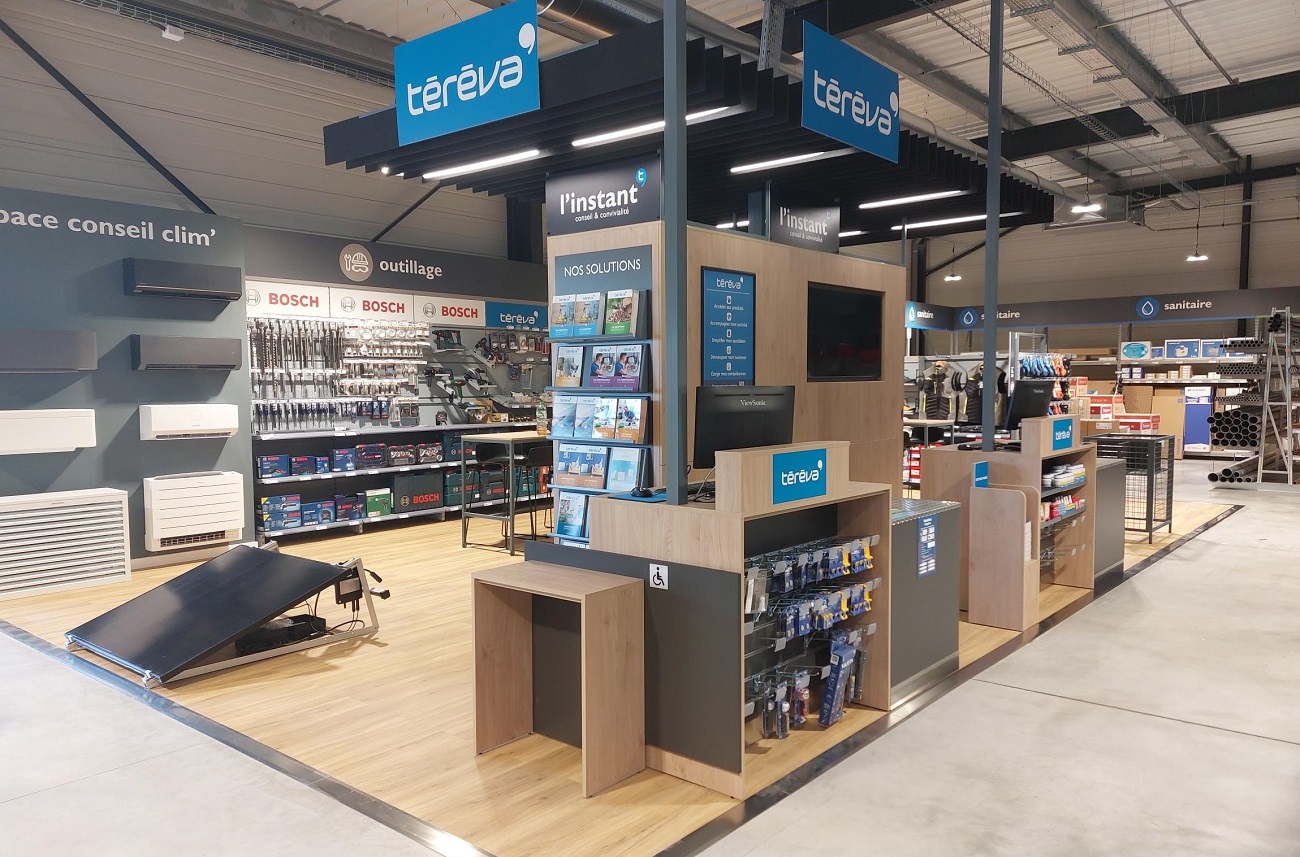À l’image du nouveau point de vente alsacien et celui de Montélimar (proche, lui, d’un Tout Faire Delage, de Prolians et Chausson Matériaux), l’unité de Saint-Junien – le dixième Téréva du Limousin – déploie “L’Instant T” (T comme Téréva) : « un nouvel espace de vente construit autour d’un lieu central et innovant », comme le dépeint l’enseigne dans un post sur LinkedIn.