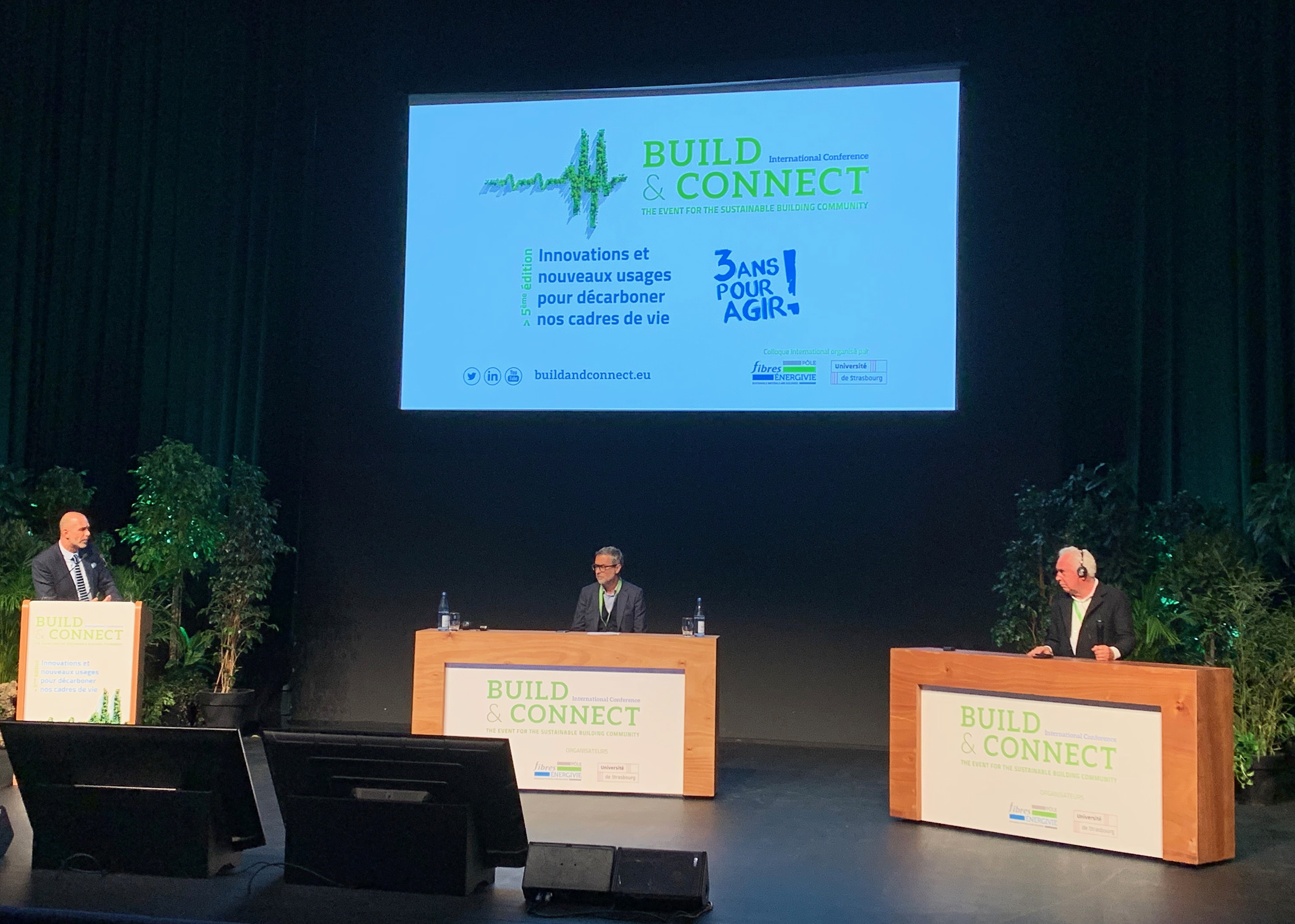 « 3 ans pour agir, innovations et nouveaux usages pour désabonner nos cadres de vie », tel était le leitmotiv de la 5e édition de Build&Connect qui a réuni à Strasbourg plus de 600 participants les 22 et 23 novembre derniers. « 3 ans pour agir, c’est-à-dire pour rester en-dessous de 1,5°C de hausse de la température d’ici à la fin du siècle, selon le GIEC », rappelle Jean-Luc Sadorge, le directeur du Pôle Fibre-énergie vie, coorganisateur de la manifestation avec l’Université de Strasbourg.