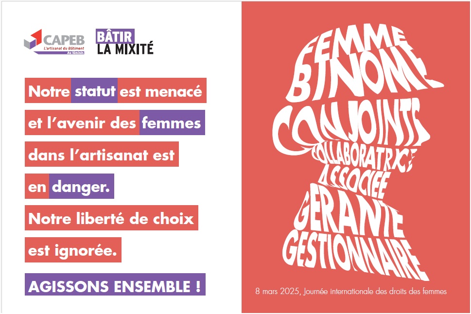 Sous l'égide de la Capeb, le combat pour défendre le statut de conjoint(e) collaborateur(trice) reprend. Ce statut "sur-mesure" pour les entreprises artisanales disparaitra le 1er janvier 2027. Une menace qui pousse les artisanes du Bâtiment à mener une action inédite de sensibilisation auprès de la première dame.