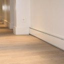 Le chauffage par plinthe Ecomatic, ton sur ton ou coloré pour jouer sur les contrastes, s’intègre totalement dans le décor. Il peut s’encastrer dans les murs ou sous les meubles, sans déparer des bâtiments anciens ou même classés, et chauffer des pièces à grande hauteur sous plafond, des vérandas, cuisines, combles, etc. Il diffuse une chaleur homogène et s’accompagne de seuils chauffants sous les baies vitrées et les portes. Grâce aux trois versions existantes – eau chaude, électrique et hybride bi-énergie –, il est compatible avec tous les émetteurs de chaleur à haute et à basse température : chaudière fuel gaz, bois ou granulés, pompe à chaleur et panneau solaire. Équipé d’un détecteur de présence intégré, il passe automatiquement du mode “confort” à “nuit” et inversement, voire en “hors gel”, et adapte sa puissance en fonction des besoins de chaque pièce.