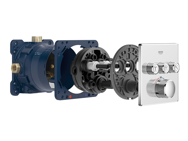 Grohe, avec sa Rapido SmartBox, offre une solution universelle pour monter tout type de système de douche encastré, mitigeurs thermostatiques à plusieurs poignées ou mitigeurs mécaniques. Dans le cas de douche ou de bain multijet, ou pour contrôler à la fois une douchette et une douche de tête deux jets, plus besoin de plusieurs corps encastrés et de plusieurs façades, la Rapido SmartBox peut accueillir jusqu'à trois sorties d'eau. Le corps encastré est équipé de raccordements ½ qui s'adaptent à 90 % des canalisations existantes. Les nombreux points de fixation permettent une pose en applique, par l'arrière d'une cloison ou en cloison légère et la profondeur d'installation n’excède pas 75 mm mur fini. Les façades murales de Grohe permettent de rectifier l'alignement avec le carrelage.