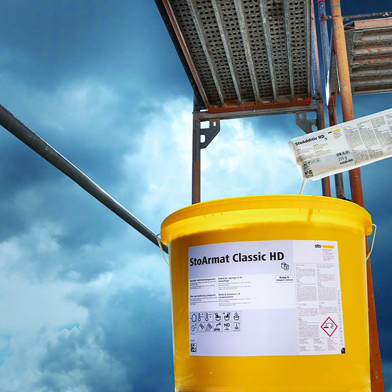 Sto s’attaque aux contraintes liées à la saison hivernale en apportant aux applicateurs d’ITE une solution qui leur permette de continuer leurs chantiers de façade quelle que soit la météo. Unique sur le marché, le sous-enduit organique bi-composant StoArmat Classic HD permet de raccourcir le temps de séchage à cœur, même par temps humide et froid, pour pouvoir appliquer plus vite la finition. Celle-ci peut ainsi être appliquée après environ 2 jours (contre 5 jours en temps normal). Le système met en œuvre un seau contenant le sous-enduit StoArmat Classic HD et un berlingot d'additif StoAdditiv HD dans le couvercle. Pour lancer le procédé chimique qui active le processus de séchage, il suffit d’incorporer l’additif au seau. StoArmat Classic HD s’utilise de manière optimale entre +1 et +10°C et résiste aux gelées nocturnes jusqu’à -5°C.