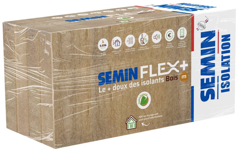 Semin Flex +, conçu à partir de fibres de bois certifiées Origine France Garantie, est un isolant flexible aux performances thermiques et acoustiques remarquables pour les projets de construction et de rénovation. Développé en collaboration avec des professionnels, il se distingue par sa facilité de pose, sa coupe nette et sa faible émission de poussière, garantissant un chantier propre et une finition impeccable.