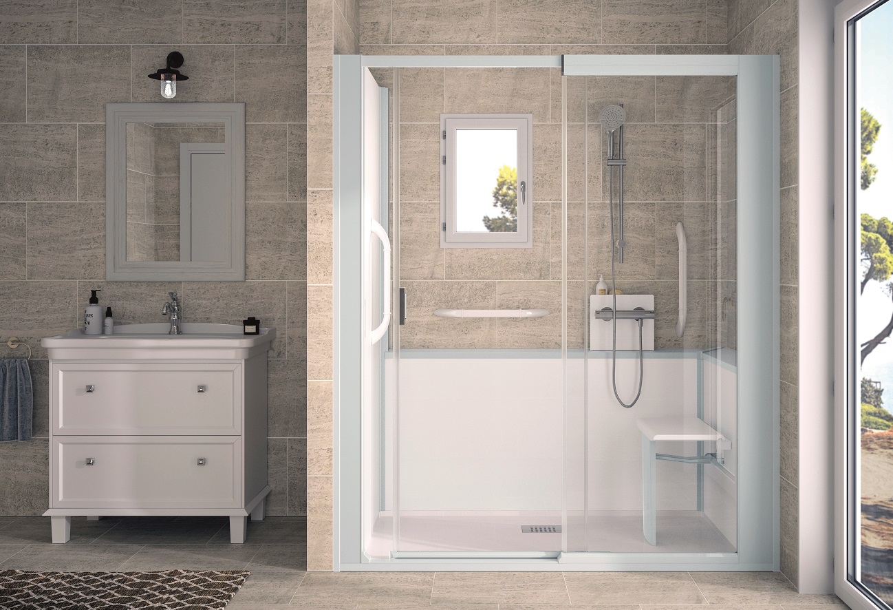 Pour la pose d’un combiné bain-douche, là encore, pas question de gros travaux. Une journée suffit pour installer Duo grâce à différentes configurations disponibles (niche, angle). Le concept dispose d’un siège, d’une barre d’appui et peut être accessoirisé (robinetterie) pour offrir un espace de bain et de douche sécurisé, facile d’accès.