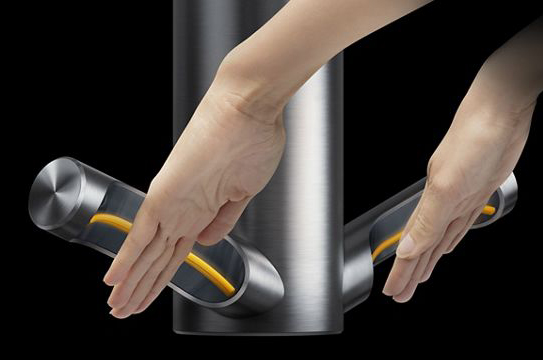Le Dyson Airblade 9kJ revendique la plus grande efficacité énergétique du marché. Ce sèche-mains à filtre à air au design unique permet un séchage rapide en 10 secondes, de façon peu bruyante. En mode Eco, le moteur numérique Dyson V4 (75 000 trs/mn) consomme jusqu’à 87 % d’énergie en moins que les sèche-mains à air chaud, et produit jusqu’à 85 % de CO2 en moins par séchage que les essuie-mains en papier. Ce puissant moteur brasse jusqu’à 23 l d’air par seconde à une vitesse pouvant atteindre 624 km/h, et évacue ce flux par des ouvertures incurvées qui épousent les contours des mains. Un filtre HEPA (haute performance) en microfibres de borosilicate plié 63 fois sur lui-même capture 99,95 % des particules, incluant les bactéries et les virus présents dans l’air des sanitaires.