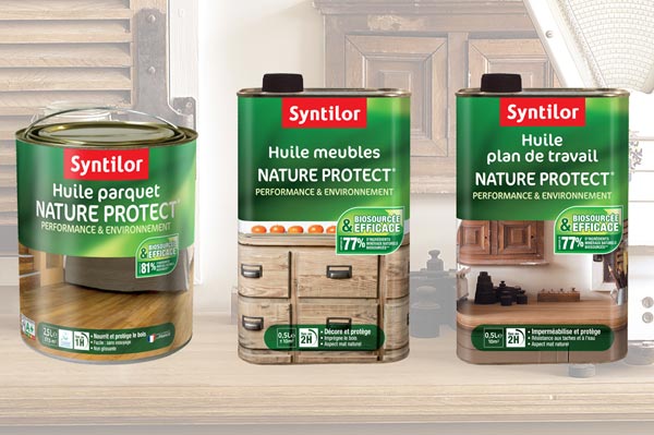 Syntilor, marque du groupe Blanchon, lance la toute première gamme complète de produits biosourcés, formulés à base de matières premières naturelles et renouvelables comme l’huile de colza, de soja ou de ricin. Baptisée Nature Protect, cette gamme destinée à la protection des bois intérieurs et extérieurs se compose de onze références affichant une grande résistance aux variations dimensionnelles du bois, aux UV, aux intempéries, aux rayures, aux chocs et à l’abrasion. Pour les bois d’intérieurs elle rassemble des vernis et huiles pour parquets, plans de travail et meubles, ainsi qu’un vitrificateur pour parquets et une peinture pour meubles ; et pour l’extérieur, une lasure, une peinture microporeuse, une huile et un saturateur.
