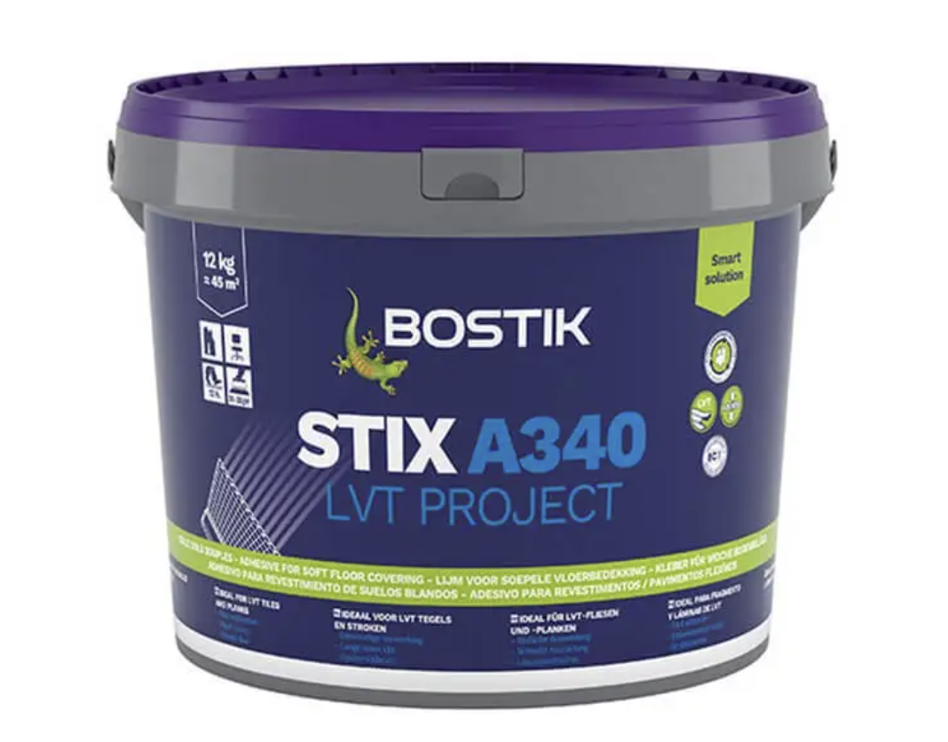 La colle acrylique sans solvants à faible émission Stix A340 LVT Project est destinée à la pose de revêtements de sols souples LVT en dalles et en lames, ainsi qu’à celle des revêtements PVC en lames et en lés. Facile à appliquer, cette colle de couleur ivoire a été pensée pour faciliter le quotidien des professionnels. Avec un blocage du revêtement en 5 minutes et une montée en cohésion rapide, elle s’adapte à de nombreux supports : bétons, chapes ciment fluides et traditionnelles, chapes anhydrites, anciens carrelages, sols chauffants et plancher rayonnant électrique… L’ouverture au trafic est possible à partir de 12 heures après pose et la prise définitive intervient au bout de 24 à 48 heures. L’application est possible à partir de +10 °C et jusqu’à 30°C. Conditionnement en seaux de 6, 12 ou 20 kg.
