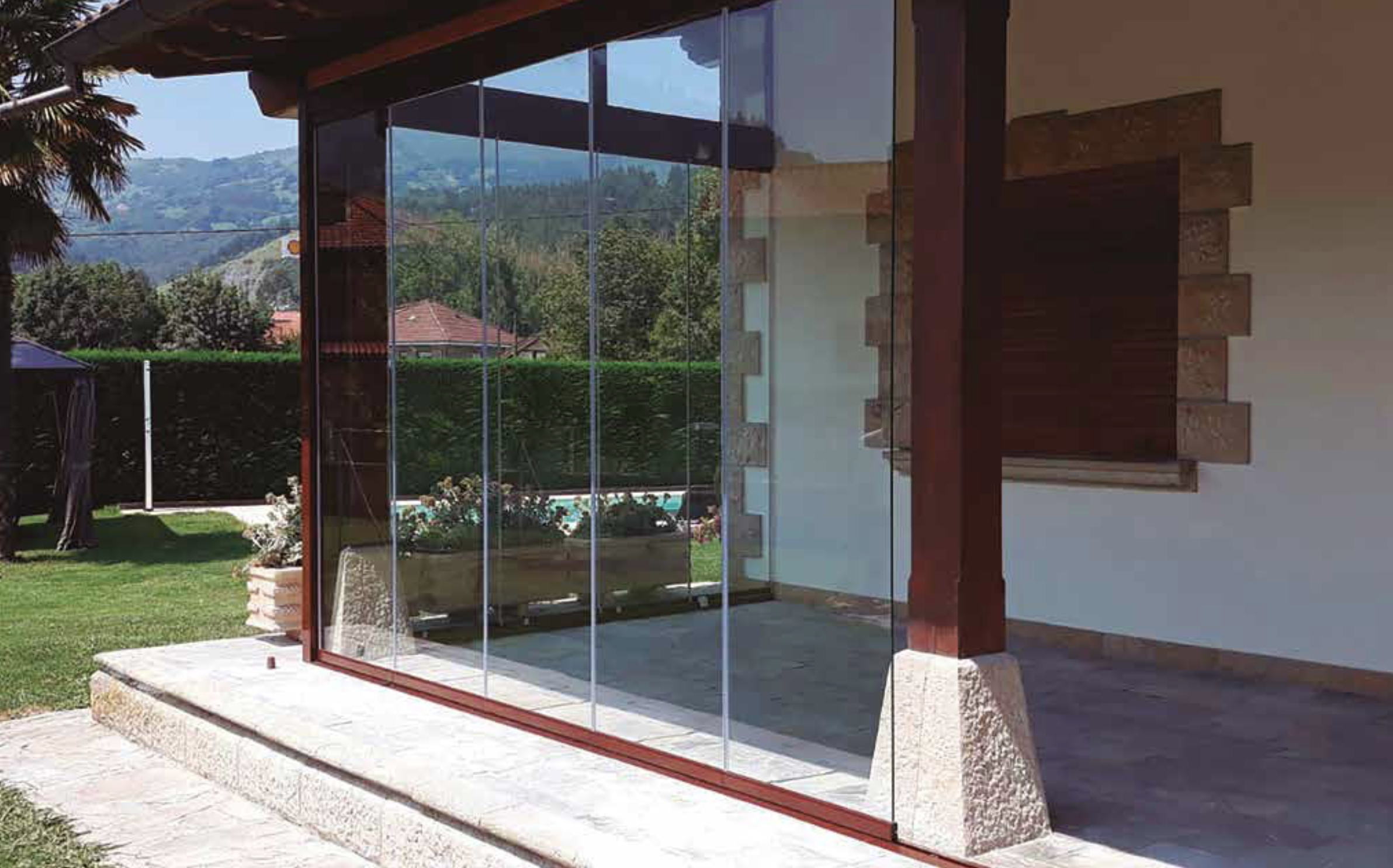 La Paroi en Verre Rétractable est un système coulissant et pivotant dont le poids repose sur le rail bas en aluminium, permettant de fermer une terrasse, un balcon ou une pergola. Sans profilés verticaux, cette fermeture panoramique permet de préserver la vue et de profiter d’un espace abrité. En verre trempé de 10 mm d’épaisseur, elle offre également une protection efficace contre le bruit et les variations de températures : gain de 10°C avec l’extérieur et réduction de 23 dB des nuisances sonores extérieures. Les panneaux sont équipés de joints inter-vantaux transparents. Leur ouverture s’effectue en faisant pivoter le vantail de service ; les autres vantaux peuvent alors coulisser et pivoter chacun leur tour pour se stocker parallèlement au vantail de service. Largeur illimitée, hauteur 500 à 3 000 mm.