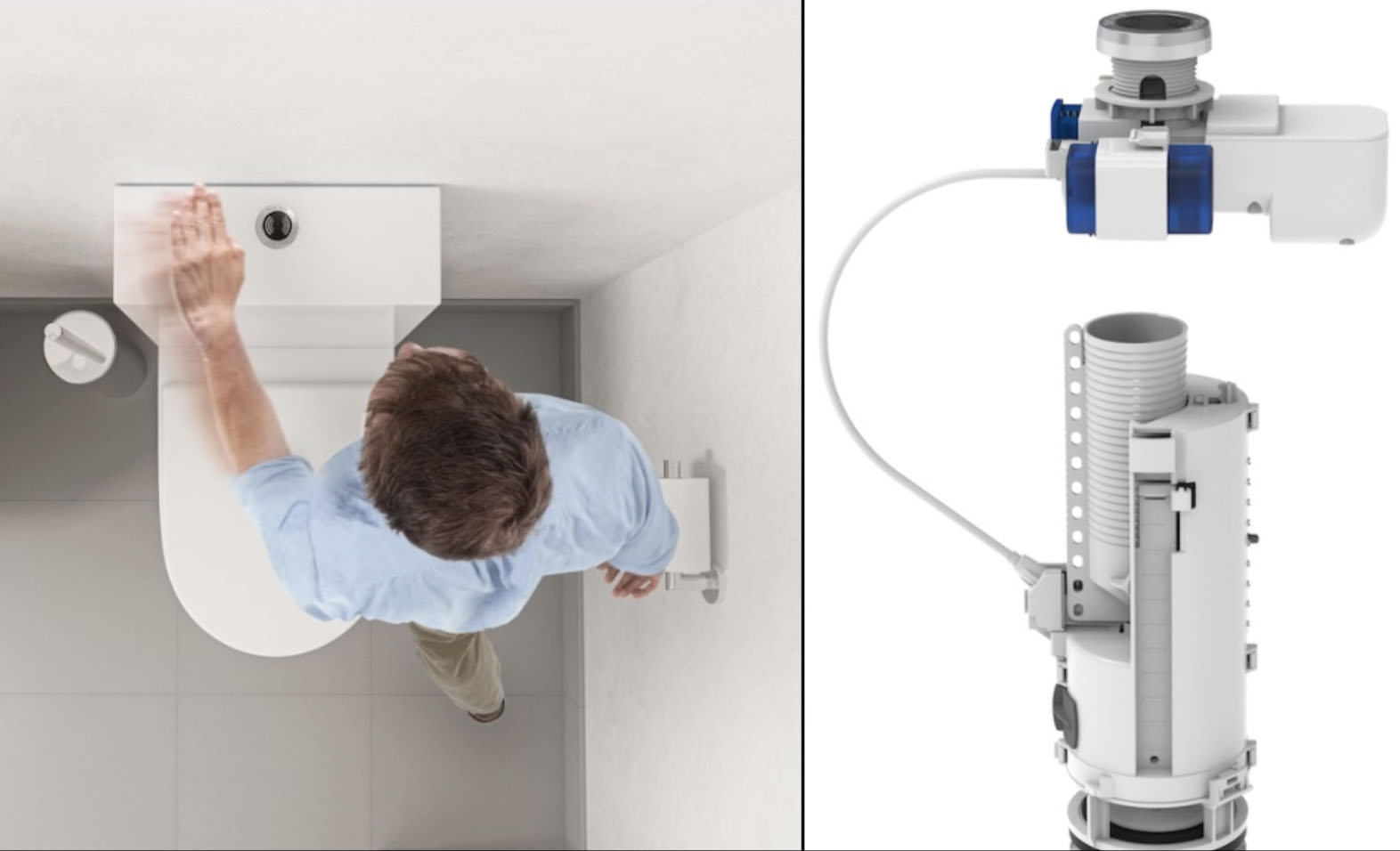 Solution optimale en termes d’hygiène, le nouveau mécanisme de chasse d’eau sans contact Optima Auto allie efficacité et durabilité. Le fonctionnement repose sur un dispositif électronique à piles (garanties pour 2 années d’usage pour un foyer de 4 personnes) qui permet le déclenchement automatique d’une petite ou grande chasse selon le geste de l’utilisateur : passage bref de la main pour une grande chasse ; ou maintien de la main pendant deux secondes au-dessus du bouton pour une petite chasse assurant l’économie d’eau. Hors dispositif électronique, le mécanisme est strictement le même que l’Optima 50, certifié pour sa robustesse. Un bouton poussoir permet d’actionner la chasse mécaniquement en cas de besoin. Le système à câble s’adapte automatiquement à la hauteur du réservoir, ce qui le rend compatible avec la plupart des modèles du marché.