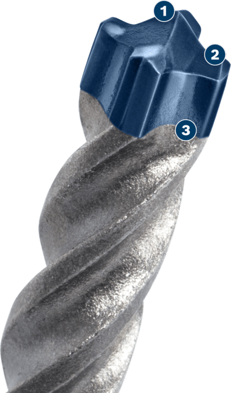 Avec le foret Expert SDS plus-7X, Bosch établit de nouvelles références en termes de longévité et de résistance de perçage dans le béton armé. Fabriqué en carbure de tungstène massif, un matériau plus dense que l’acier et le titane, ce foret robuste perce tous les types de béton ferraillé et d’armature. Il possède une tête de forage à 4 taillants à arêtes de coupe plates et témoin d’usure qui assure une capacité d’enlèvement très élevée et une très faible usure. La connexion entre la tête en carbure de tungstène et l’hélice est extrêmement solide et durable. Une pointe de centrage tranchante en forme de pyramide (180°) assure une bonne avancée dans le matériau et un guidage optimal. La gamme comprend 71 forets disponibles dans des diamètres de 3,5 à 16 mm.