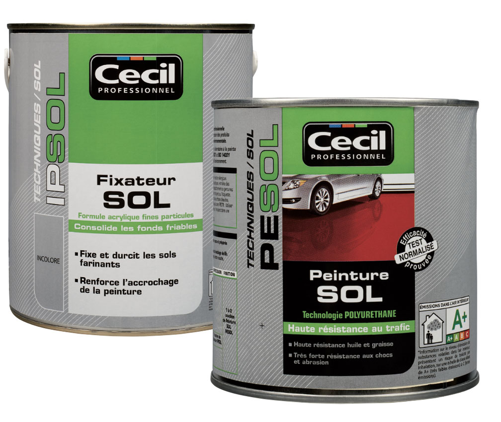 Applicable sur tous les types de béton et de ciment, en intérieur ou en extérieur sous abri, le système impression IP Sol et finition PE Sol apporte aux sols de garages ou de sous-sols une protection optimale à l’abrasion, évitant l’effritement et la production de poussières et également les taches. Le primaire IP SOL Cecil Professionnel renforce et durcit en profondeur les sols friables. Sa formule assure une excellente pénétration dans les supports et régularise la porosité. Quant à la peinture PE SOL, elle est formulée pour former un film très dur et très résistant sur tout type de sol. Elle résiste aux passages répétés des voitures, aux taches d’huile et de graisse, aux traces de pneus... Cette peinture d’aspect brillant au rendu lisse est très résistante aux rayures, aux chocs et aux poinçonnements d’outils. Teintes : blanc, sable, gris clair, gris foncé, rouge brique.
