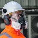 Attention, ce masque doit être porté avec des lunettes de sécurité ou une lunette masque s’il est besoin de se conformer à la norme de sécurité EN166.