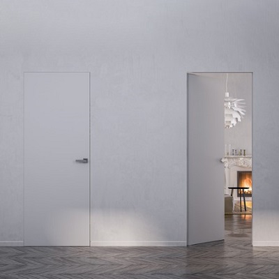 Syntesis Battant Acoustique est la première porte battante affleurante réduisant les nuisances sonores jusqu’à 34 dB (30 ou 34 dB selon les besoins) entre les pièces d’une habitation, contre 20 % rencontrés couramment sur le marché des portes intérieures. Cette huisserie dotée de portes à âme pleine plus dense que les portes traditionnelles, absorbe le bruit en le piégeant dans la masse. Des joints isophoniques dans la feuillure de la porte entrent en contact direct avec les différentes surfaces. A la fermeture, la plinthe automatique, insérée dans la rainure basse, est actionnée par un déclencheur ; sa forme arrondie et souple calfeutre les interstices avec précision. En bois, sans habillage et affleurante, cette porte sublime la cloison de ses lignes épurées. Elle est livrée pré-peinte, mais peut être choisie en différents coloris sur mesure.