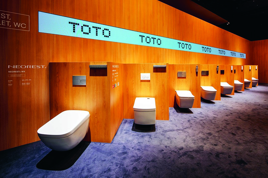 Pour poursuivre son expansion en Europe, Toto avait mis les petits plats dans les grands à l’occasion du salon ISH, le salon mondial de référence du bain, des techniques du bâtiment, du chauffage, de la climatisation et des énergies renouvelable. La marque japonais s’est installée à l’emplacement habituellement occupé par Grohe au Forum, sur un stand de 1 500 m². Outre ses WC lavants, Toto présentait également des baignoires, des bâti-supports, de la robinetterie ou encore des systèmes de douche. Mais, sans surprise, la principale attraction de ce stand était le nouveau prototype de washlet de l’entreprise.