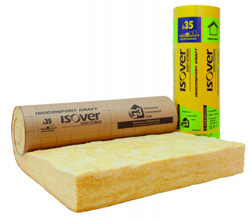 Isover lance le premier isolant en laine de verre en lambda 35 avec une résistance thermique de 8,55 m2.K/W en simple couche pour les combles aménagés. Isoconfort 35 Kraft 300 mm, dédié au marché de la maison individuelle neuve, offre aux artisans une solution thermiquement performante et rapide à mettre en œuvre. Il atteint même un R de 10 m2.K/W ou plus s’il est utilisé en complément d’une isolation de 60 mm ou plus entre chevrons. Il se pose rapidement par embrochage sur les suspentes Intégra2 Réglables qui permettent également de créer un vide technique entre la plaque de plâtre et la membrane, exigée par le DTU 45.10 dans la plupart des cas. Le produit est proposé en plaques de 1,20 m de large et 2 m de long et disponible depuis le 1er février 2021 dans les négoces Isover.