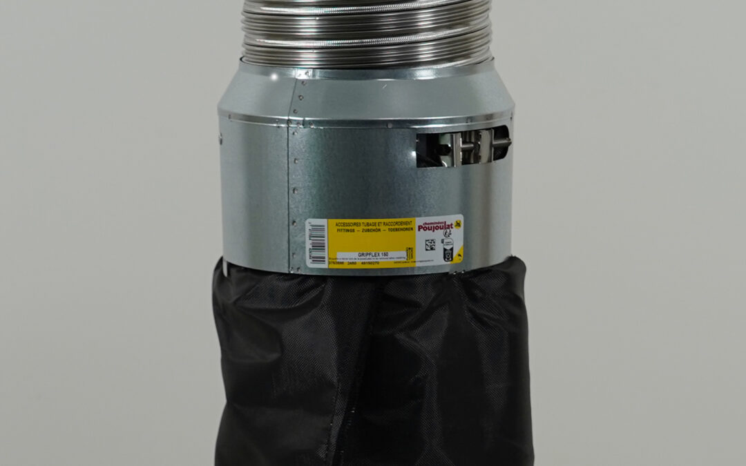 Il est équipé d’une extrémité, nommée Gripflex, qui vient s’installer sur le haut ou le bas du flexible selon le sens du tubage. Cette pièce astucieuse offre l’avantage de rendre solidaire l’isolant et la toile sur le flexible inox intérieur. De plus, sa forme profilée de forte épaisseur permet à l’installateur d’accompagner le flexible dans les passages compliqués. Slimflex-Iso est disponible en diamètres 80, 100, 130 et 150 mm.