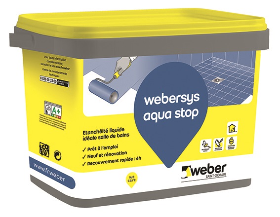 Destiné à la réalisation de travaux d’étanchéité sur planchers intermédiaires avec ou sans siphon, dans les locaux P3 au plus, en neuf comme en rénovation, le système d’étanchéité liquide (SEL) Webersys Aqua Stop présente aussi l’avantage d’une fonction SPEC (système de protection à l’eau sous carrelage au sol et mural). Il est donc parfaitement adapté à l’installation de salles de bains.