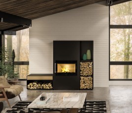 Quel que soit le nombre de modules choisi pour le rangement des bûches, le poêle HVAM 5530 de Cheminées Seguin se présente toujours comme une unité...