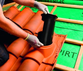 Le kit de raccordement Aguila conçu par Monier s’insère dans une tuile à douille sur le toit et répond parfaitement aux nouvelles exigences du DTU 68...