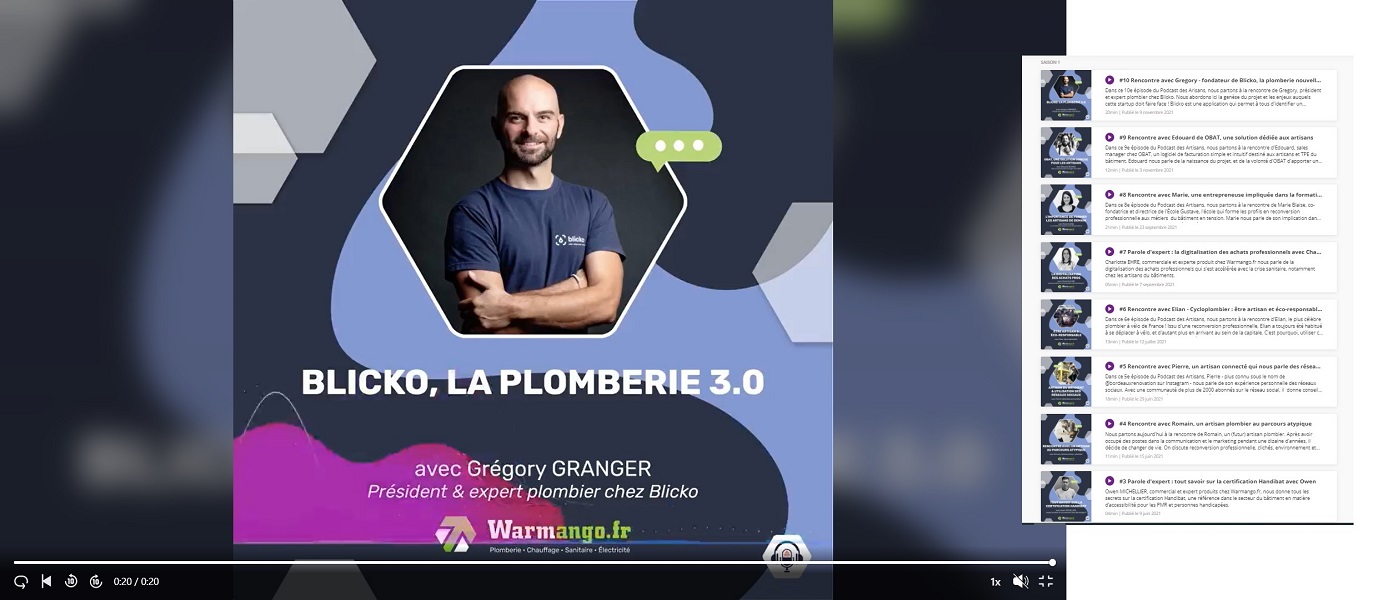 Son émission tend le micro à des figures emblématiques ou pas de la filière. Par exemple, le cyclo-plombier Elian Alluin parle d’éco-responsabilité et d’économie circulaire, un autre des réseaux sociaux ou encore Marie Blaise (cofondatrice de l’École Gustave à Paris) qui insiste sur l’importance de la formation des artisans, tandis que Grégory Granger à la tête de la plateforme Blicko décortique les solutions de visio-diagnostic.