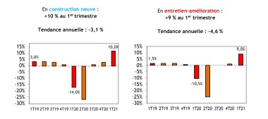 Un premier trimestre radieux pour l’artisanat du Bâtiment, c’est ce que dévoilent les dernières statistiques publiées par la Capeb. Avec +9,5% de croissance, certes à comparer à un 1er trimestre 2020 presque amputé du mois de mars, les résultats expriment avant tout la montée en puissance des travaux de performance énergétique (+11%) et le rôle essentiel des artisans sur ce marché. L’activité du neuf n’est toutefois pas en reste avec une augmentation de 10% à nuancer au regard des -14 % au même trimestre 2020.