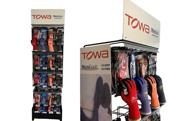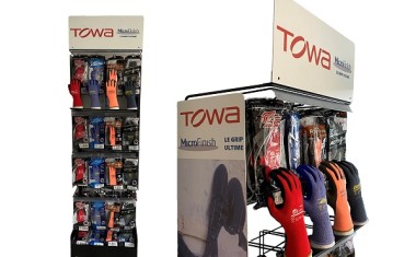 EN PHOTO • Stocké par le bordelais Seeds Industry, le 20/80 des gammes de gants Towa est déjà disponible dans les libres-services des négoces généralistes (quincaillerie, fournitures industrielles, bois et matériaux). Au cours de l’été, l’offre pourra être aussi référencée par les enseignes spécialistes en EPI.