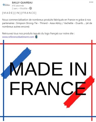 EN PHOTO • Depuis la rentrée, le distributeur valorise les produits et solutions techniques fabriqués en France par ses fournisseurs en les taguant sur son site marchand. Cette offre "Made in France" sera aussi mise en avant dans les deux catalogues métiers que le distributeur diffusera courant 2021.