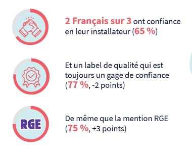 Le volet de questions sur les aides financières apporte un éclairage plutôt négatif puisqu’une majorité des répondants, en particulier chez les plus modestes, ont une méconnaissance des dispositifs existants. Les trois-quarts des personnes interrogées aimeraient bénéficier d’un véritable accompagnement complet : mieux identifier le bénéfice obtenu (76 %), les aides auxquelles ils peuvent prétendre (77 %), le montage des dossiers (73 %), ou encore, la réalisation d’un bilan énergétique (75 %). Et « plus des deux-tiers auraient besoin d’être aidés pour prendre contact avec les artisans et installateurs », ajoute l’étude. Interrogés justement sur l’interlocuteur privilégié pour engager les travaux, les Français gardent leur confiance dans les artisans et installateurs. Sur cette réponse, on constate l’importance des qualifications et labels (77 %), même si, là encore, la confusion et la méconnaissance dominent. Sur cette question, on observe également la progression d’internet comme outil de recherche (49 %), et plus précisément le fait de disposer de notes ou d’avis (plus 9 points. Mais, ce qui semble paradoxal, l’atout proximité constitue le critère ayant le plus progressé : l’item « implanté près de chez vous » bondit de 27 points avec 70 % des réponses. M.-L. B.