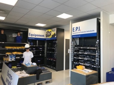 Avec ses cabines d’essayage et son service de personnalisation (sérigraphie…), l’espace EPI est conçu avec «l’ambition de créer un vrai univers plaisir et séduction ». Conçu comme un site de dépannage, le point de vente dispose d’une fourgonnette pour une livraison express sur chantier (sous 3 h). Il sert aussi de base arrière pour livrer les commandes passées via le web ou un commercial Berner. Outre un service de phone & collect (retrait sous 1 h), l’agence dispose d’une dizaine de casiers (avec codes personnalisés) pour le retrait marchandises 24 h/24.