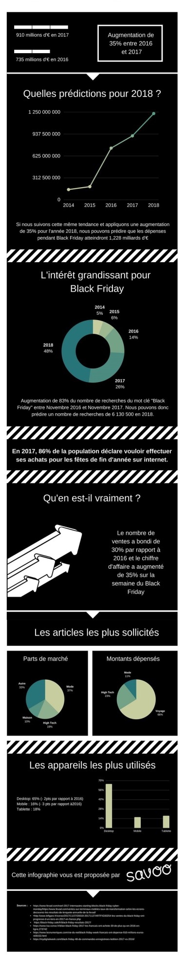 • Vendredi 29 novembre 2019, dès minuit : lancement du Black Friday chez tous les cybermarchands• Vendredi 29 novembre 2019, entre 7 h00 et 8h30 : prévision de pic de ventes sur les promotions du Black Friday• Samedi 30 et dimanche 1er décembre 2019 : nouvelle vague de promotions du Black Friday• Lundi 2 décembre 2019, dès minuit : démarrage du “Cyber Monday” (promotions dans les univers de la high-tech et des produits numériques essentiellement)