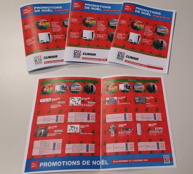 EN PHOTO • Cette année, Bleu Rouge a diffusé le prospectus “Promotions de Noël” à 2 000 exemplaires. Ici, les dépliants du distributeur Climair : un adhérent du réseau installé à Bègles, près de Bordeaux.