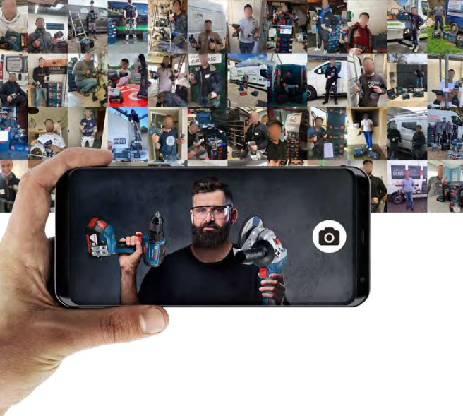 - Envoyer une photo de lui avec 2 outils sans-fil 12V et/ ou 18V Bosch Professional. L’entreprise à laquelle il appartient doit être également identifiable (véhicule, vêtement de travail...).