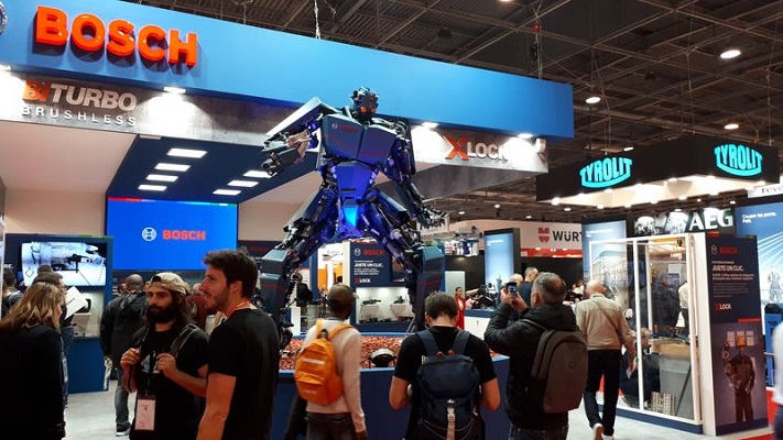 une première version du “BoschBot” avait déjà été dévoilée par Bosch New-Zeland chez certains distributeurs néo-zélandais. À Batimat, le “BoschBot II” – réalisé par un artiste allemand avec des outils Bosch, forcément – trône sur le stand pour démontrer que « la marque reste leader sur son marché, mais adopte dorénavant une posture… d’outsider dans sa manière d’aborder le marché et de l'appréhender », confie Nicolas Gros. Avec des arguments de poids : le “BoschBot II” ne pèse pas loin de 1 tonne. Et 600 kg sans son socle ! Du haut de ses 3,16 mètres, osera-t-il participer au casting du 7e épisode de la saga “Transformer” dont la sortie sur grand écran est attendue l’an prochain... ? S. V.