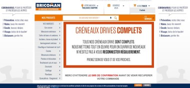 EN PHOTO • Victime de son succès ? Ce mardi 28 avril, en fin d’après-midi, le site internet de Bricoman indiquait que l’agenda des drives sans contact était « complet ». Dans un contexte de reprise qui commence à s’accélérer petit à petit sur les chantiers, l’enseigne qui s’appuie sur « une forte culture des quantités chantiers », est confrontée, comme ses confrères, à une mécanique du drive assez chronophage pour ses préparateurs de commandes.
