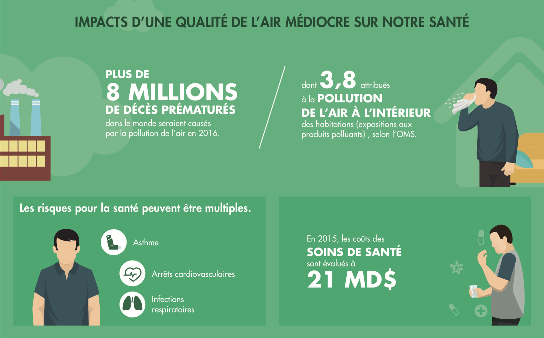 Et bon nombre de vos clients sont surpris d'apprendre qu'ils sont davantage exposés à la pollution de l'air à l'intérieur de leur logement, plutôt qu'à l'extérieur : l'air intérieur devient de plus en plus nocif, il est 5 à 10 fois plus pollué que l'air extérieur.