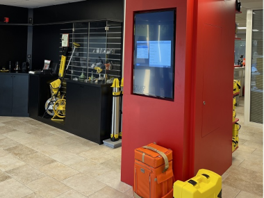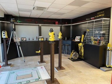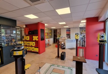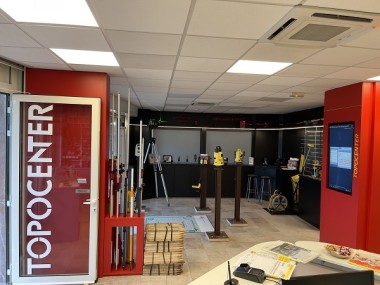 C’est à Saint-Laurent-du-Var, près de Nice, que le nouveau concept a d'abord été testé. Gérant d’Azur Topo Services (l’un des revendeurs TopoCenter en France), Georges Portuguès souligne que « notre showroom devient le cœur des activités de l’agence dont la taille a doublé en passant de 85 m² à 160 m². Zone d’accueil, comptoir, coin convivialité, showroom : toutes les zones du point de vente ont été séparées par des murs de parement de bois de couleur rouge ». Structuré autour de deux façades distinctes en gris anthracite, l’espace d’exposition met en avant d’un côté les appareils de mesure (lasers lignes et points, niveaux de chantier, stations totales, scanner 3D…) et de l'autre les systèmes de détection, de géolocalisation, les niveaux optiques et les accessoires de topographie. Exposés sur des tapis de démonstration (appelés “tapis builder”), tous ces instruments sont accessibles pour être testés. Afin de faire “vivre” la zone d’exposition, l’offre est présentée sur des consoles en IPN amovibles et modulables en fonction des nouveautés produits et des besoins clients. Enfin, « au centre du showroom, un écran TV diffuse des vidéos (tutoriels produits, interviews de nos clients) pour permettre aux professionnels de patienter tout en s’informant », précise encore Georges Portuguès. Après ce premier site pilote à Nice, la majorité du réseau (14 revendeurs agréés et un Mobil’Shop) devrait avoir adopté le nouvau dispositif merchandising et d’agencement courant 2022, estime Catherine Hauet. S. V.