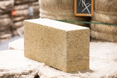 Se présentant comme une alternative au béton de chanvre, il est lié à la chaux et apporte une nouvelle valorisation intéressante à un coproduit abondant et peu cher. L’ingénieur poursuit : « Nous travaillons sur deux formulations : des blocs autoporteurs d’isolation, perspirants qui assurent également le déphasage thermique et apportent du confort, utilisables en doublage d’un mur existant et des blocs porteurs, structurels, avec du ciment, pour la construction neuve ». Les premiers, d’une épaisseur de 10 à 30 centimètres, peuvent supporter différentes finitions comme les enduits de chaux, de terre ou de plâtre. « Le mieux est de laisser respirer le mur pour bénéficier des avantages du matériau », nous confie le spécialiste. Les professionnels ne seront pas déboussolés : ces blocs se montent à joints minces comme de la maçonnerie classique. Pour les blocs porteurs, le développement est encore en cours mais il devrait aboutir en 2022